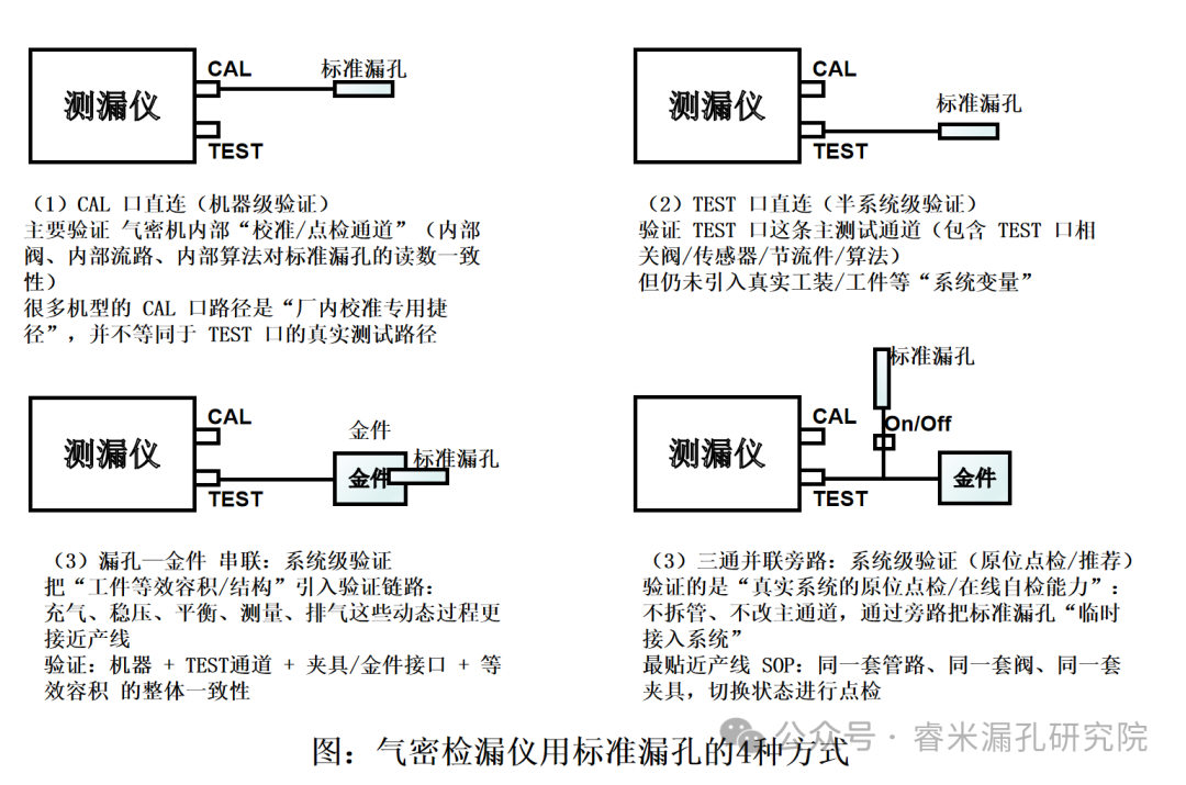 关键结论:只用 CAL 口漏孔,只能证明“仪器内部链路基本可用”,不能证明“产线系统分选能力可靠”。系统级验证必须覆盖管路、夹具、密封与装夹动作。