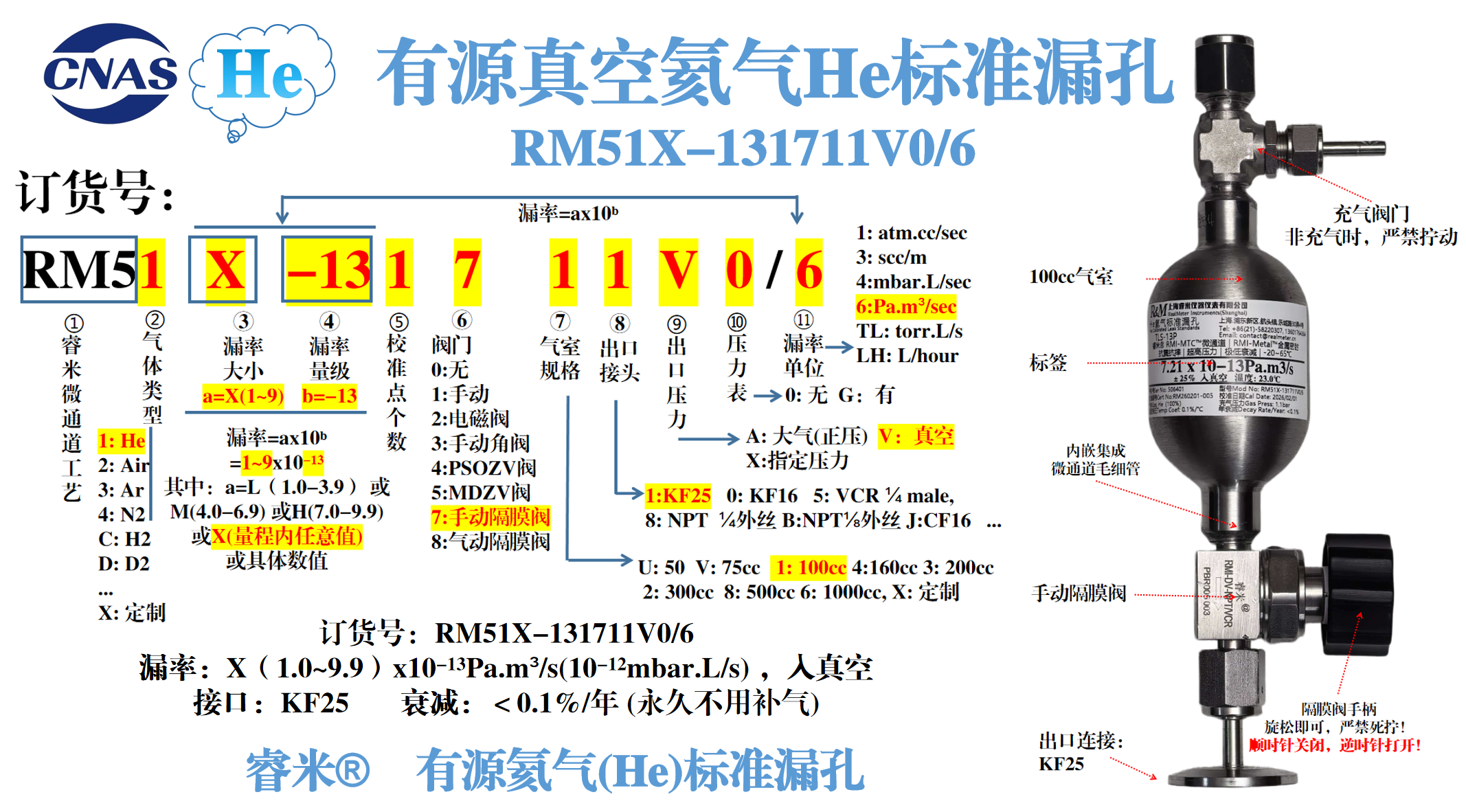 睿米 ® 有源真空氦气(He)标准漏孔