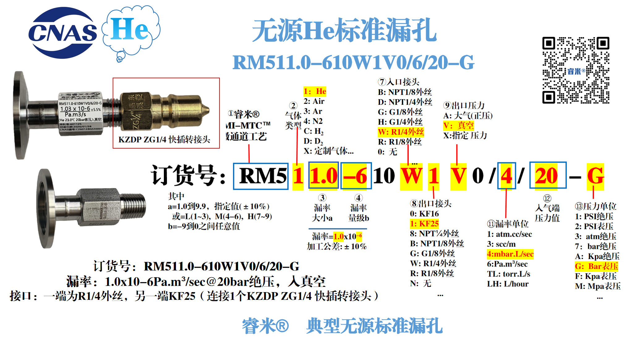 睿米 ® 典型无源He标准漏孔: