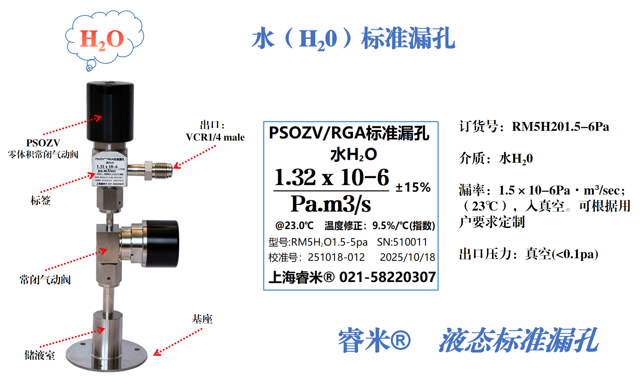 常用的标准漏孔,介质为气体,单一气体或一定比例的混合气体。有些特殊的场合,需要用到,常温常压下,介质为液态的标准漏孔。睿米®利用自身的技术优势,研发出第一代液态标准漏孔;并且不断改进,又推出了第二代,设计更合理的,适用介质为液态的标准漏孔。