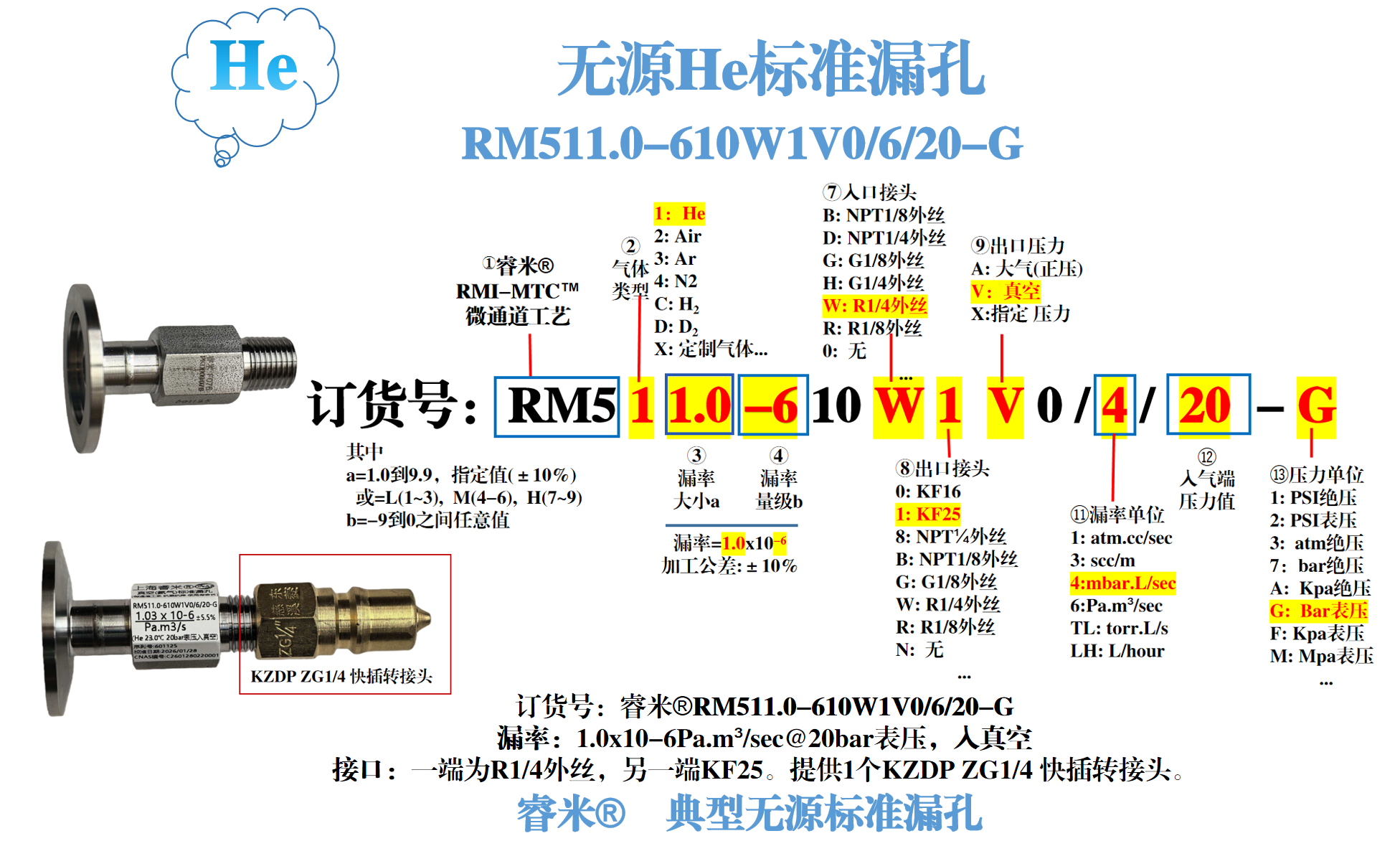 睿米 ® 典型无源He标准漏孔: