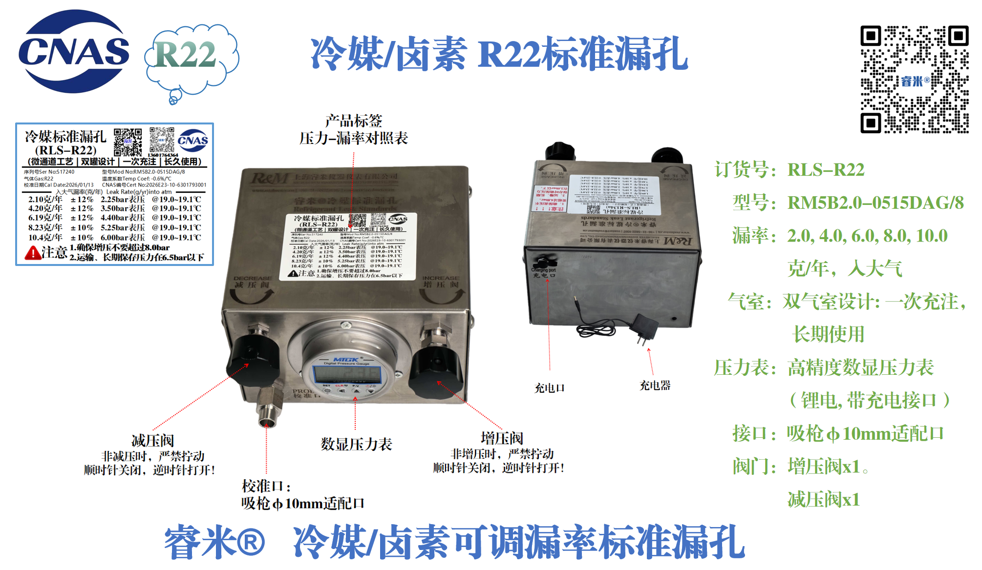 以下是睿米公司为某用户定制的冷媒/卤素标准漏孔,典型案例: