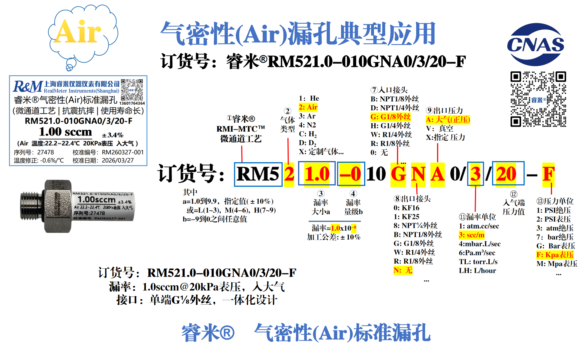 以下是睿米公司为某用户定制的气密性标准漏孔,典型案例: